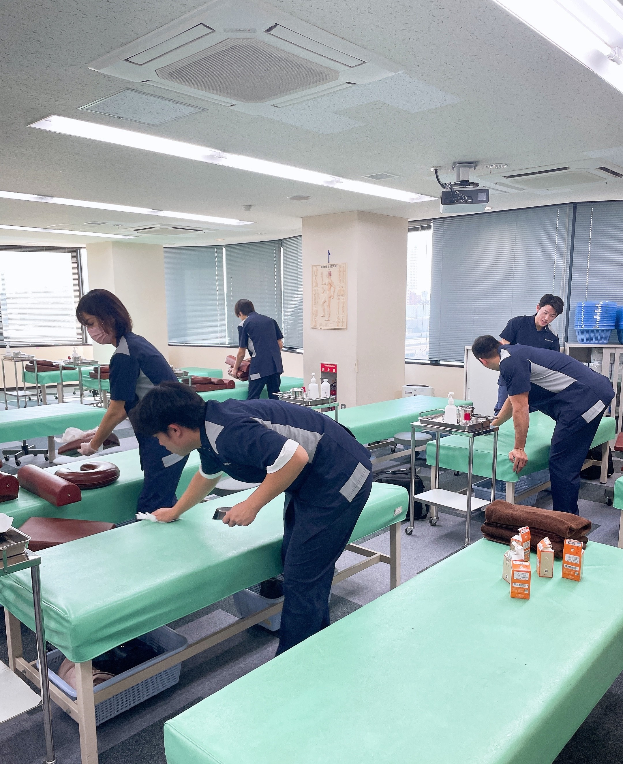 冬休みに入る前に鍼灸学科の学生&教員で実技室の掃除を行いました!