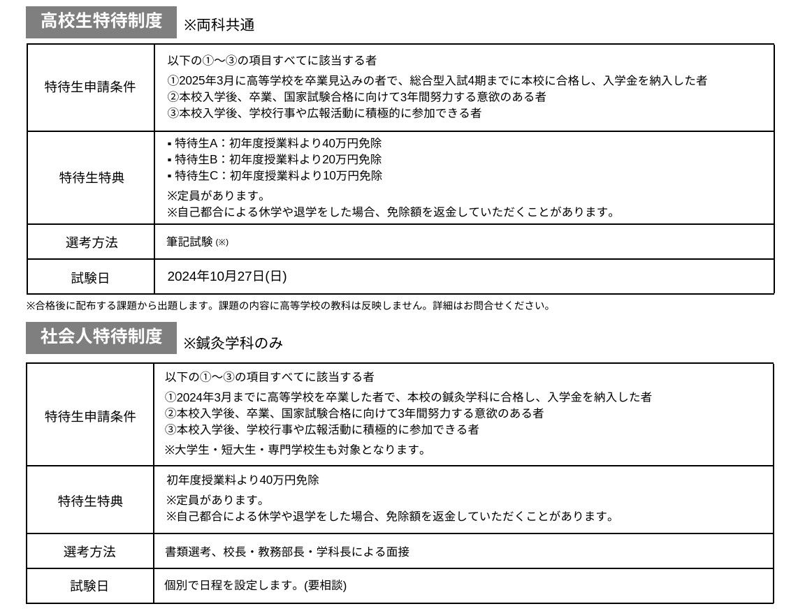 ◇特待生制度のご案内