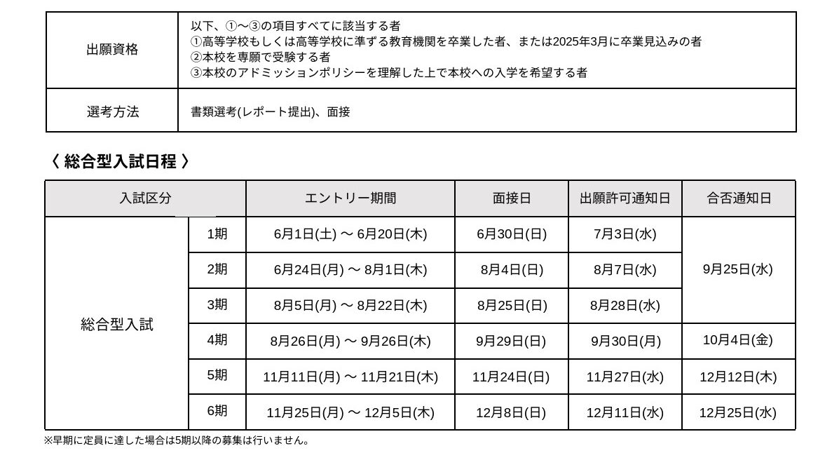 総合型入試は、6⽉1⽇(⼟)から順次エントリー開始となります。