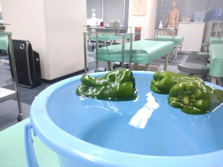 浮物通しとは、洗面器やバケツなどに水を入れ、浮かべた野菜や果物に鍼を刺すのですが、