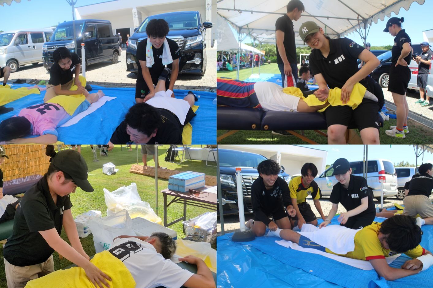 初日に施術に来ていただいた選手がまたケアを受けてくださったことで、学生たちの気持ちに少し余裕が生まれ、