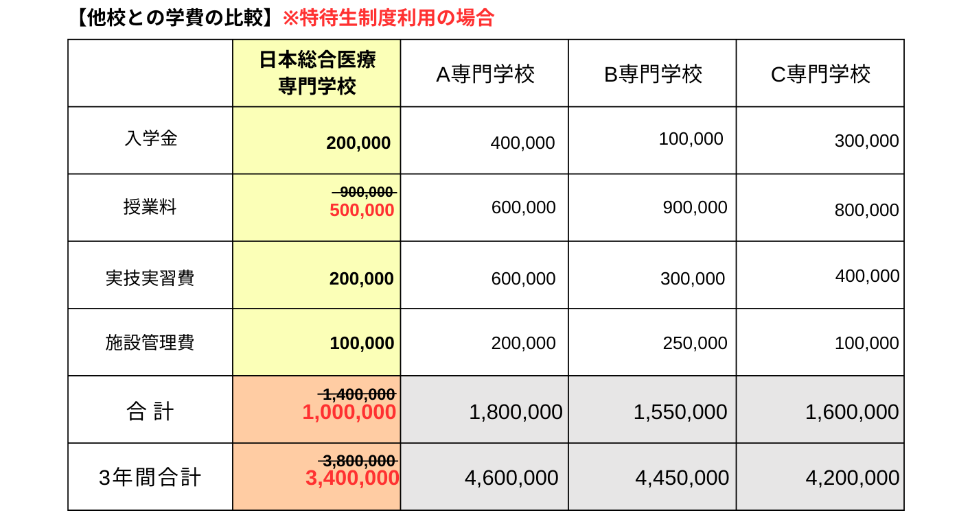 日本総合医療専門学校は、業界団体の支援により経済的な学費で3年間学ぶことができます。